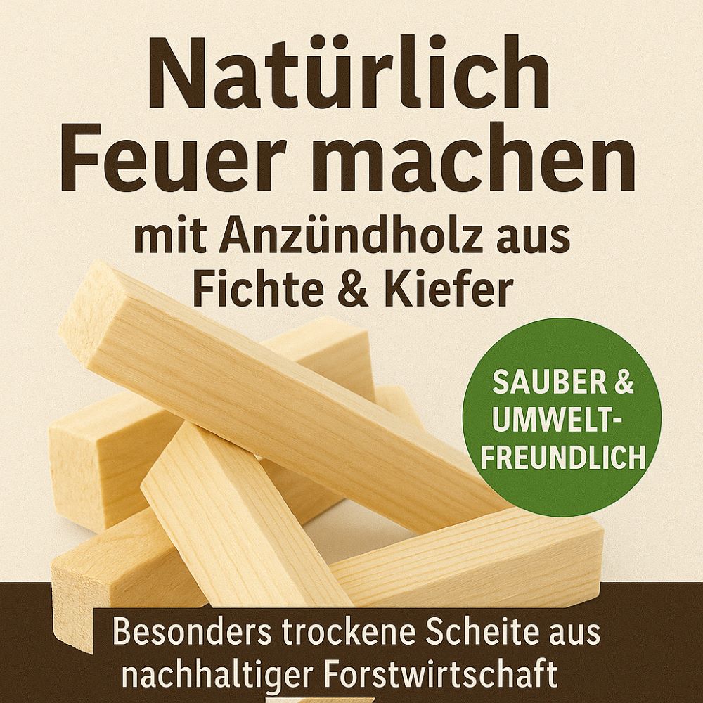 - Trockenes Premium-Anzündholz aus Fichte – sofort entzündlich und sauber brennend