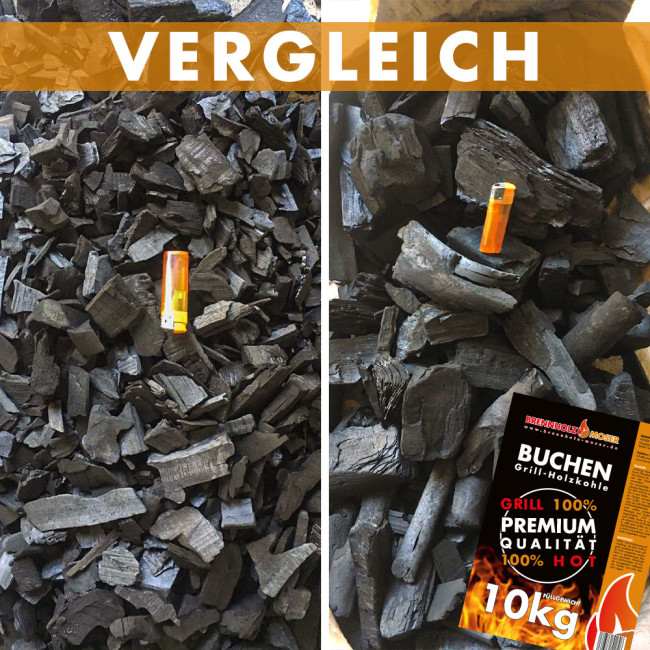 "Holzkohle Buche für BBQ, Grillkohle groß, 20kg, Buchenholzkohle, Steakhouse Qualität, Premium Qualität, Körnung: 30-130mm, Weber Grill geeignet, 2x 10kg Sack, VERSANDKOSTENFREI"