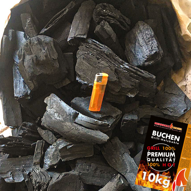 Holzkohle Buche für BBQ, Grillkohle groß, 20kg, Buchenholzkohle, Steakhouse Qualität, Premium Qualität, Körnung: 30-130mm, Weber Grill geeignet, 2x 10kg Sack, VERSANDKOSTENFREI